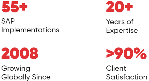 With 20 plus years of industry experience, our expert team specializes in implementing SAP Best Practices and delivering top-notch support for our client’s SAP landscape. We take a holistic approach to delivery, focusing on People, Processes, Data, and Technology to drive digital transformation and enable our clients to operate as intelligent enterprises.